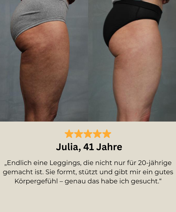 Durch die spezielle Strickstruktur wird die Haut sanft stabilisiert, wodurch Unebenheiten optisch reduziert werden und das Hautbild insgesamt glatter erscheint – ohne einzuengen oder die Bewegungsfreiheit einzuschränken.